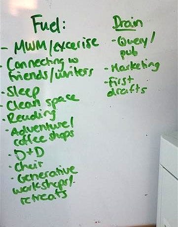 Well, THAT didn’t last. Life happens, as it does, and for reasons, I have had minimal energy to do much of anything in the past few months, much less write. I have received rejections to pretty much all of the queries I sent out, which tells me I probably have to revise my query letter, but as you can see on this fancy chart I put together, querying/publishing pursuits is on the list of things that drain me. And when I have limited energy to begin with, it’s hard to spend time on something that will just suck it up more.